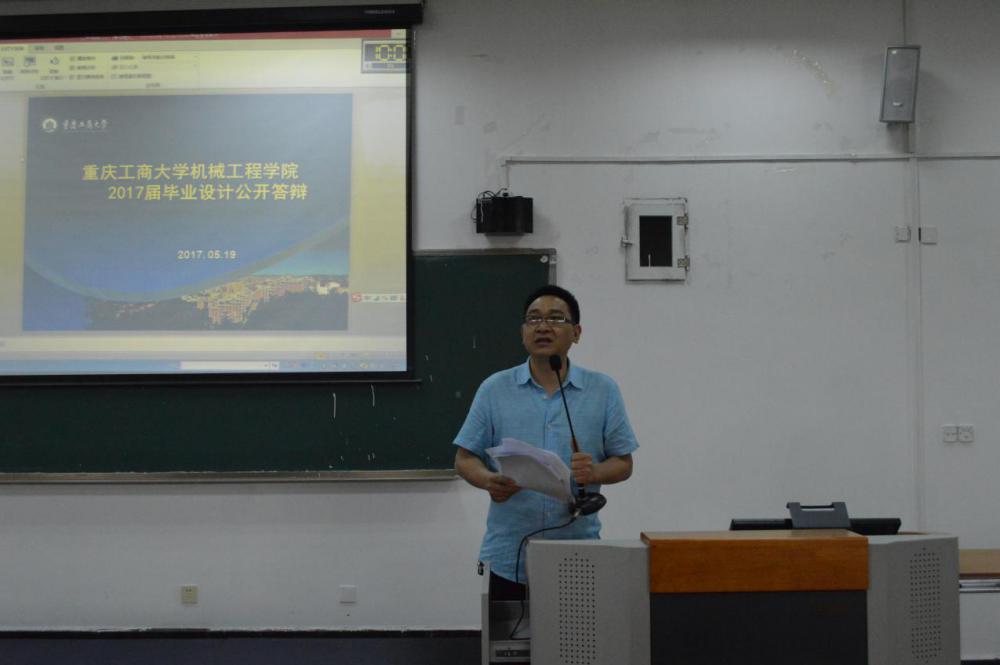 公开答辩由学院教学院长杨祖彬教授主持。首先学院院长杜力教授对毕业设计答辩的目的、意义、重要性作了讲话,杜院长指出毕业论文答辩是学生增长知识,交流信息的过程,是大学生全面展示自己的勇气、雄心、才能、智慧、风度和口才的最佳时机,也是大学生们向答辩小组成员和有关专家学习、请求指导的好机会。机械工程系系主任杜彦斌副教授讲了答辩的流程、注意事项。