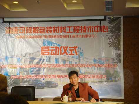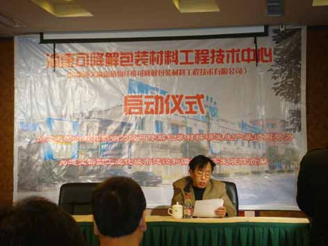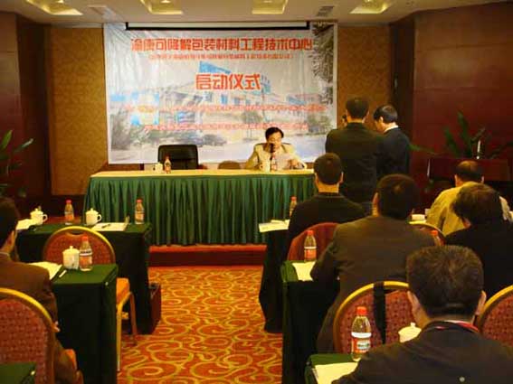 在贵州省、遵义市各级政府部门的推动下,由开云官网与遵义市大康绿色产品有限公司联合组建的“贵州遵义渝康可降解包装材料工程技术中心”,于2008年10月26日上午,在遵义大世界酒店举行了隆重的启动仪式。