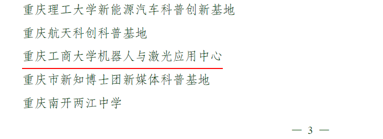 近日,由重庆市科学技术局、中共重庆市委宣传部、重庆市教育委员会、重庆市科学技术协会和重庆市社会科学界联合会审核认定,开云kaiyun官方网站“机器人与激光应用中心”获评为2022年度重庆市科普基地。