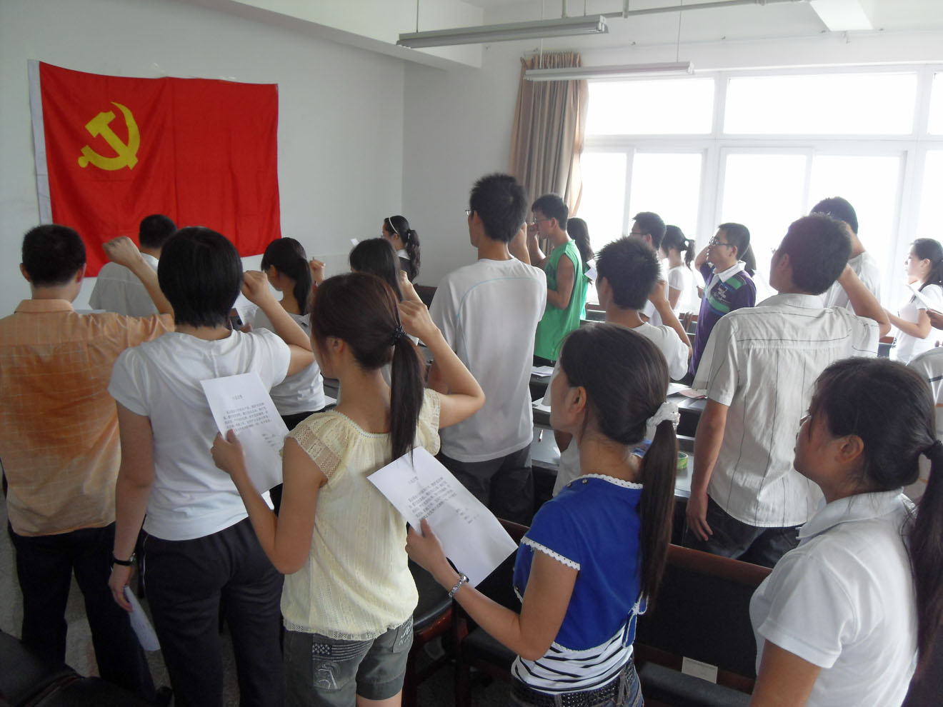 “我志愿加入中国共产党,拥护党的纲领,遵守党的章程,履行党员义务,执行党的决定,严守党的纪律,保守党的秘密,对党忠诚,积极工作,为共产主义奋斗终身,随时准备为党和人民牺牲一切,永不叛党。”2009年6月15日中午12点30分,开云kaiyun官方网站会议室传出了一阵阵嘹亮高亢的声音,学生一支部的28名预备党员正在进行庄严的宣誓仪式。出席此次仪式的有学生一支部支部书记袁程利老师,06级的邱全奎老师、08级的王微老师。