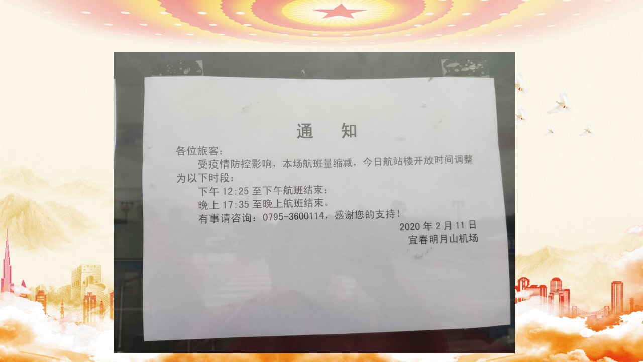 2月初,学校官方微信发通知教职工2月15日前返渝。我马上打开购票软件购买了2月11日返回重庆的机票。但是面对城区的交通管制,怎样到达机场成了最大的问题。而且当时我的家乡新余市作为江西省重点疫区,临近的城市都禁止新余车牌的车辆进入本地城区。我不停的电话、网络咨询相关部门,得到的都是否定或者不确定的答复。直到出行的当天,我都不知道我是否能够顺利回到重庆。2月11日那天下了非常大的雨,我们一家三口穿着雨衣,带着口罩,我背着孩子,从家里步行到县城的高速路口,等待着开宜春车牌的亲戚,来高速路口接我们前往宜春明月山机场。上车后,我们防疫措施都丝毫不敢松懈,和孩子在全程都带着口罩坐在后排,生怕在路途中感染病毒给亲人的健康带来威胁。