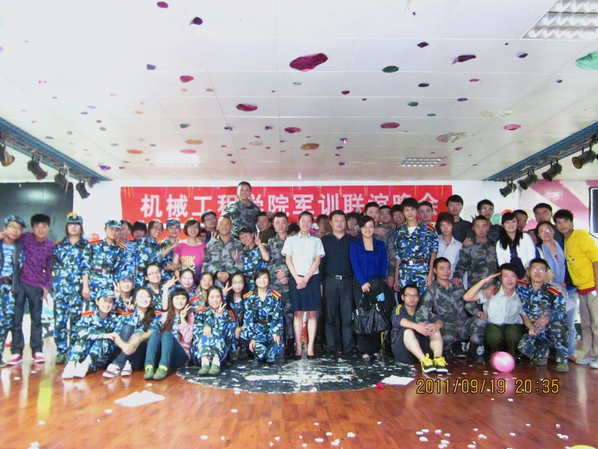 伴随着一首铿锵有力的黄河大合唱,晚会正式开始。首先,杨书记做了讲话,他对教官们在军训工作中的辛勤付出表示感谢,向军训的全体学员表示了慰问。他说,军训是大学生履行兵役的一种形式,是发扬艰苦奋斗作风和人才培养的好机会,他希望同学们能做到:1、艰苦奋斗,努力学习;2、学习教官好思想、好作风;3、认真向解放军学习纪律优良、作风严谨,为以后成才打下基础。接下来,学院的领导们为内务卫生优秀的寝室颁发了奖品。其后,怀着炽热感恩的心,学院为教官们送上了小礼物,全场响起了雷鸣般的掌声。在《红旗颂》、《血染映山红》等精彩的话剧中,我们感受到曾经流淌在这片土地上的革命者鲜红的血;在《朋友》、《讲不出再见》等歌曲中,我们互诉着与教官的兄弟情,同学们怀着满腔情感对着教官们说:教官辛苦了!在这激动的夜晚,呐喊声一波接着一波,将晚会推向了高潮。在《团结就是力量》的歌声中,晚会落下了帷幕。