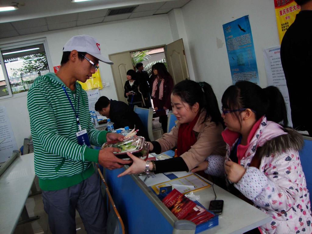 当日早上七点,由开云kaiyun官方网站.、社会与公共管理学院、设计艺术学院三个学院的志愿者组成的志愿者服务团队在慧智楼全体就位。他们个个精神抖擞,以良好的精神面貌开始了一天忙碌的工作。从迎宾到接待,从贴展牌到为用人单位解决眼前的困难,从为企业服务到为毕业生提供咨询,从递一瓶水到送一盒饭,义工志愿者们都以良好的状态,友好的态度积极工作,得到了用人单位一致好评。