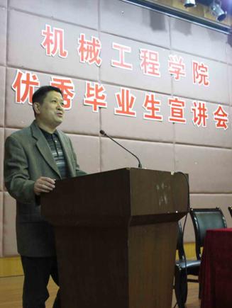 宣讲会在罗书记热情洋溢的致辞中拉开序幕。他首先对获得校级优秀毕业生的19名同学表示祝贺,对他们做出的成绩给予了充分肯定,希望低年级的同学们能以他们为榜样,努力拼搏,在未来的学习生活中为学院争光添彩。