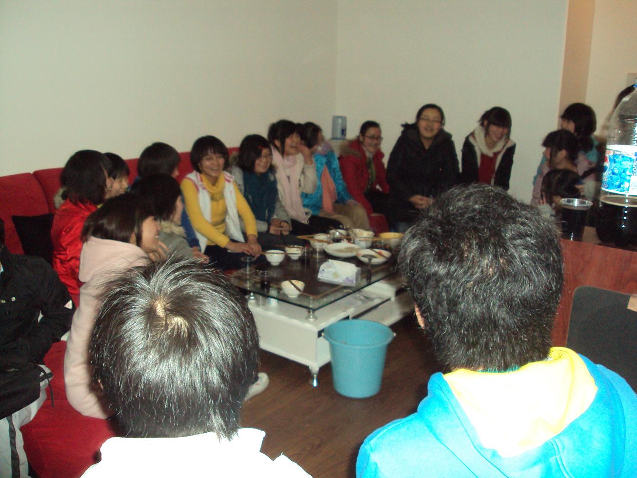 下午三点,大家就来到了日租房。尽管日租房不是很大,条件也不是那么优越,但家的感觉还是迎面袭来。做馅、和面、烧水、切菜、大家七手八脚的忙活起来。大家边做边吃,边吃边做,忙得不亦乐乎。许多北方来的同学纷纷使出看家本领,南方同学也不甘示弱。最后,热腾腾的饺子出炉了,所有人一起高兴的分享了胜利的果实。最后,全体同学跟老师一起玩起了游戏,再一次拉近了同学与老师、同学们之间的距离,增进了大家的感情。
