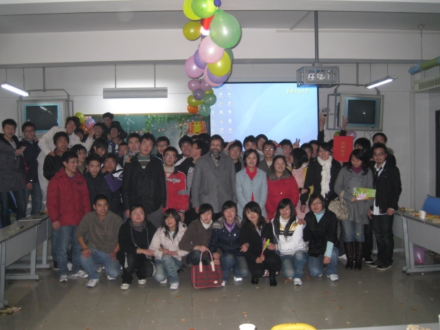 新年将至,人心雀跃,为庆祝新年的到来,2009年12月30日晚七点,08机制三班在7404教室举办了一场热闹非凡的元旦晚会。参加本次晚会的嘉宾有辅导员王微老师,外教老师,学生会代表和各个兄弟班级的同学。