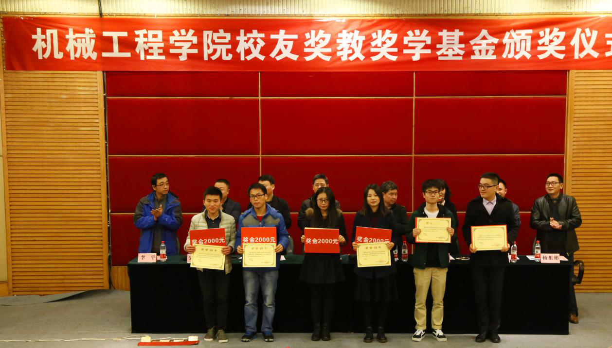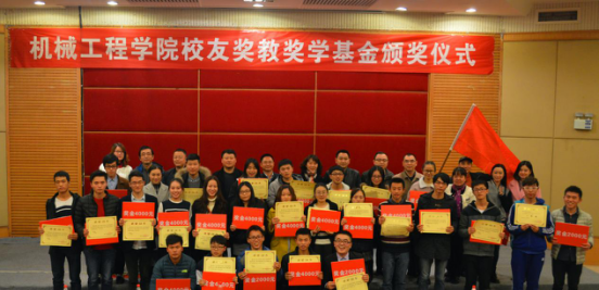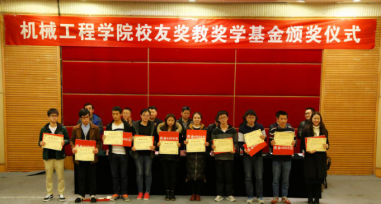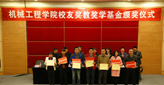 颁奖仪式上93届机制专业毕业校友、广东校友分会副会长杨焕宇宣读奖教基金获奖名单;学生处处长罗勇、教务处副处长胥江河分别宣读了学生状元奖、优秀学生干部获奖名单并为学生颁奖。今年是开云kaiyun官方网站首次进行奖教教学金评选,对获得奖教金的7位老师给予每人8000元的奖励,对获得各班级学习状元奖的29位同学给予每人4000元的奖励,对获得优秀学生干部奖的6位同学给予每人2000元的奖励。