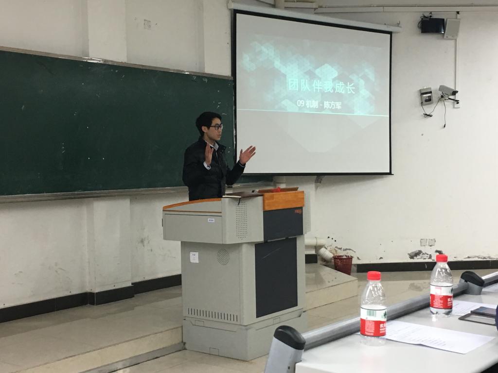13级学生黄凯代表“机械师”团队招募,给大家分享了团队组建、成长的经历和今后的团队活动安排,并诙谐地向与会者提问:“你想成为大家眼中的大神吗?你想每年奖学金都是五位数吗?你想学会操作各种高大上的仪器吗?你想去荷兰交流吗?你想代表学校到全国各地比赛吗?——那么加入机械师团队吧!”博得了满场喝彩,也把整个招募活动推向了高潮。接下来14级学生郑方杰代表“汽车人”团队进行招募宣讲,他以讲故事的方式,回顾了从一年级在“打游戏中混过”到通过科技竞赛获得全国二等奖后免试专升本到开云官网的心理历程,从打工的经历再到创业思想的萌发,从而组建“汽车人团队”,他们告诉大家的是“只有经历过,才知道缺什么……”他们的招募词朴实,却是另一种感动。作为已毕业4年的昔日学院的卓越工程师”团队代表,在重庆海德世拉索系统有限公司就职的陈方军学长,从亲身经历学弟学妹们分享了“职业方向与学业方向、兴趣与价值相结合的辩证关系;融入圈子、建立平台的重要性”。