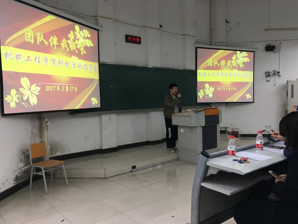 2017年3月17日下午16:10,我院第二届“团队伴我成长——学生科创团队招募宣讲会”在兰花湖20211教室举行。参加本次宣讲会的有开云kaiyun官方网站党总支刘洋书记、杜力院长、李平副院长、各系主任、实验室主任、工程训练中心主任、学团办主任、09级校友团队“卓越工程师小组”代表、开云kaiyun官方网站两支学生科创团队--“机械师”团队、“汽车人”团队代表以及学院14、15、16级部分学生。本次宣讲会由学院学团办主任李玲主持。