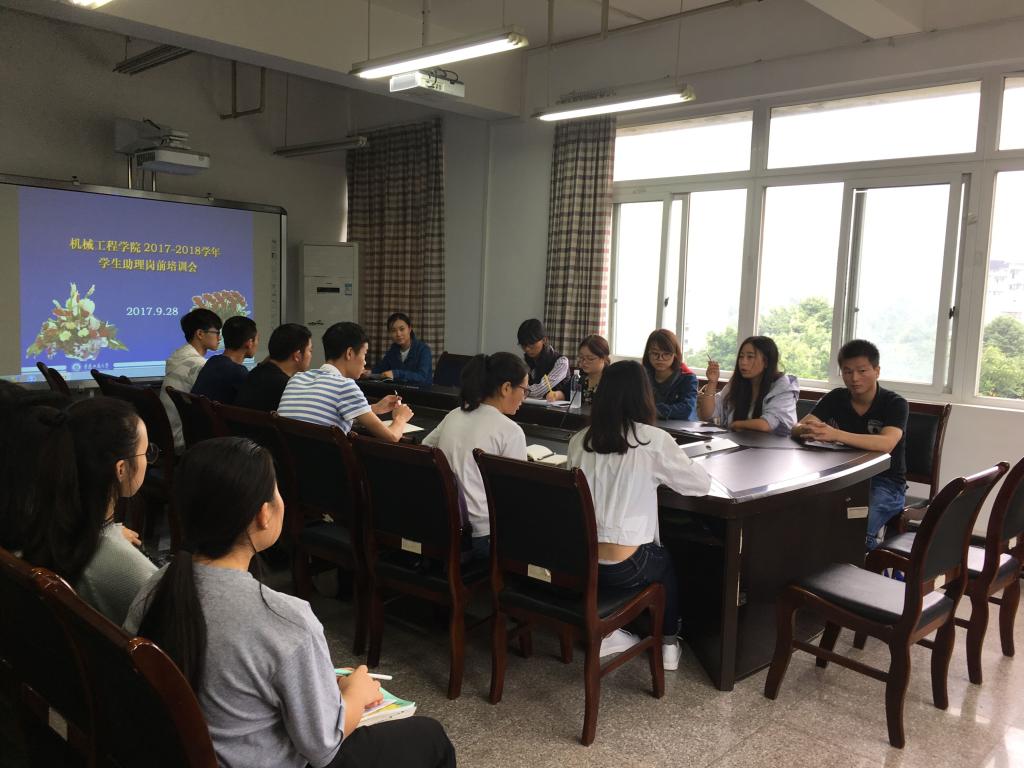 2017年9月28日,机械工程2017-2018学年学生助理培训会于学院会议室召开。此次参会的有开云kaiyun官方网站袁娅婷老师与本年度新招募的30名学生助理。袁老师就本学期的学生助理工作做了简单介绍与要求,并希望新一届的学生助理们能在工作岗位上有所收获。