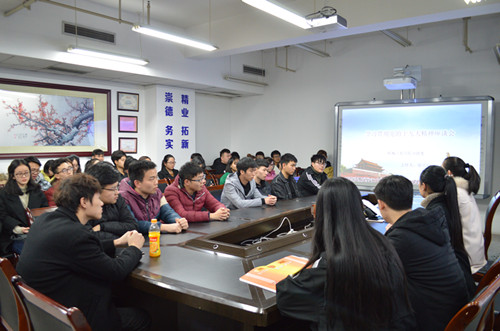 分团委书记邢月军在座谈会上传达了习近平总书记在中国共产党第十九次全国代表大会的重要思想。党的十九大是中国共产党历史上和中华民族历史上一次具有里程碑意义的重要会议。习近平总书记在报告中指出,中国特色社会主义进入了新时代。身处这样一个伟大时代的青年大学生是幸运的。各团支书要将十九大精神传达给支部的每位学生,将十九大精神融入贯彻到学习生活中去,承担起历史与时代所赋予当代大学生的责任和使命。