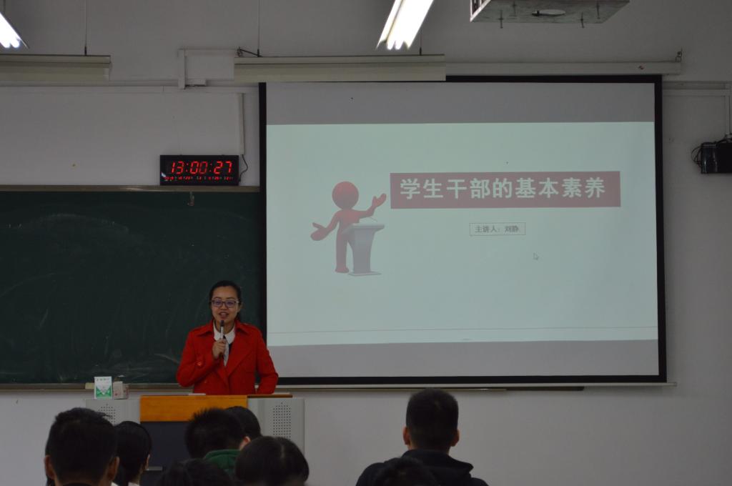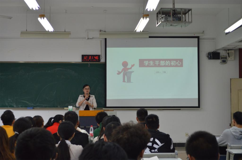首先主持人介绍了本次培训大会的目的,并介绍莅临本次大会的老师。接下来王微老师为大家开展了培训演讲,王微老师说到“学生会的初心应该是为学生服务”,学生会做到优秀的表现应体现在:1.被广大学生认可。在很多方面为同学考虑,做到让同学们满意;2.能为同学发声。将同学们的诉求传递给老师。王微老师又谈到当学生干部的“五个心”,身为学生干部应具备爱党爱国的忠心,具备大局意识,时刻保持对工作的热爱,培养坚定的信念将学生干部的责任坚持下去,希望同学们在学生干部任职期间“拿走收获,留下奉献”。随后刘静老师带来了主题为“学生干部的基本素养”的培训演讲,旨在让同学们明白身为学生干部的含义。刘静老师从“为什么要做学生干部”这个问题出发,让同学们思考学生干部这个名称应具备的素养,同时讲到当学生干部的初心不同,状态不同,结果也不同。接下来刘静老师向同学们讲了“五个对”,对工作有热度、对表达要自信、对人际要务实、对情商要提高、对管理要磨练。“五个要”,心态要平稳、反应要迅速、做事要主动、学习要自觉、工作和学习的激情要永不退。刘静老师接地气的话语中阐述了学生干部应具备的素养,作为学生干部应做到不忘初心、严于律己,力求做到优秀,提高自身服务师生的本领。最后,全体与会师生合影,培训大会到此结束。