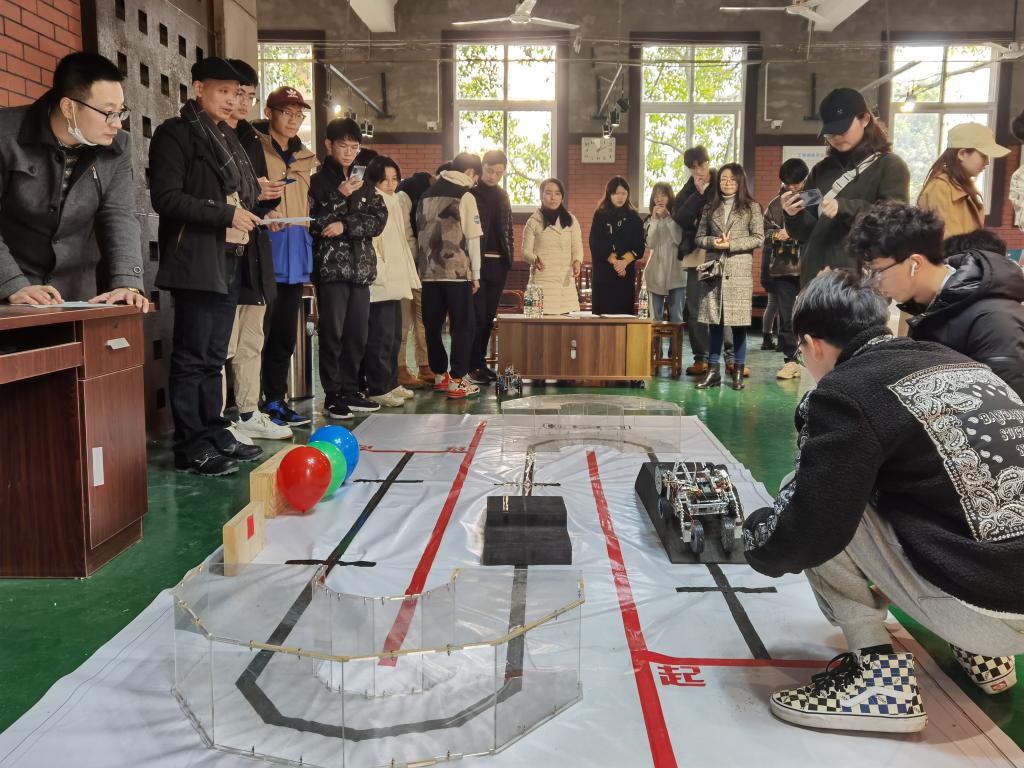 2021年12月9日星期四下午13点,开云kaiyun官方网站学生科技创新文化活动月系列赛事之全地形小车大赛在南岸校区新北工程训练中心举行。本次共有二十支小组参与比赛,由机械学院教师陈蕙妃、夏洪均、李永亮担任评委,最后评出五支小组晋级决赛。