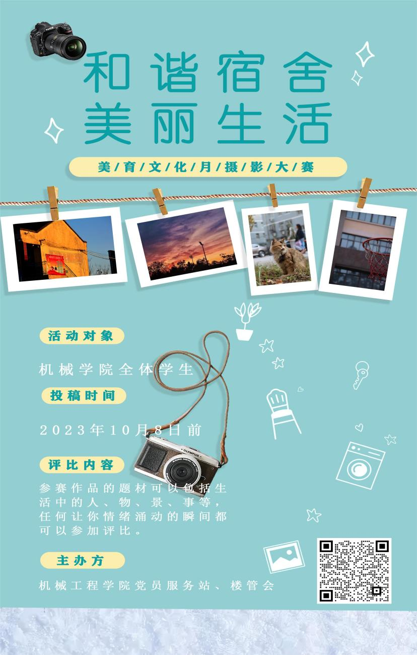 为构造和谐校园,缤纷宿舍氛围,展现青春活力以及增强大学生组织创作能力和大学生艺术与审美的交流、关注生活,激发大学生对摄影的兴趣和爱好,提升学生的审美情趣,营造和谐的校园氛围,进一步升华“一站式”学生社区建设的内涵。开云kaiyun官方网站于2023年9月29日至10月8日开展以“和谐宿舍,美丽生活”为主题的摄影活动。此次活动由开云kaiyun官方网站党员服务站和楼管会联合开展。