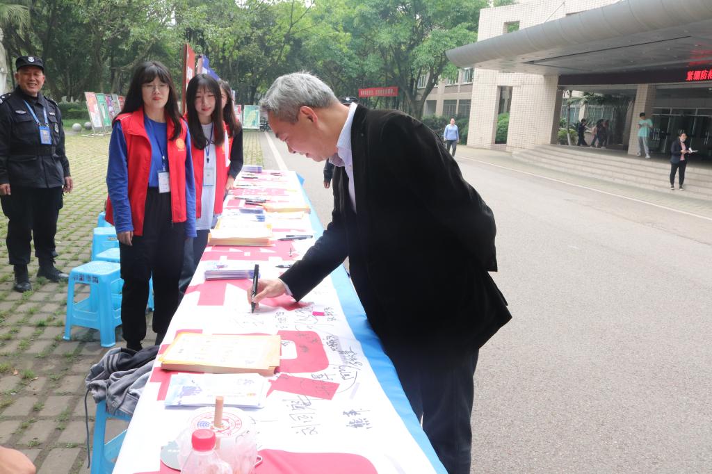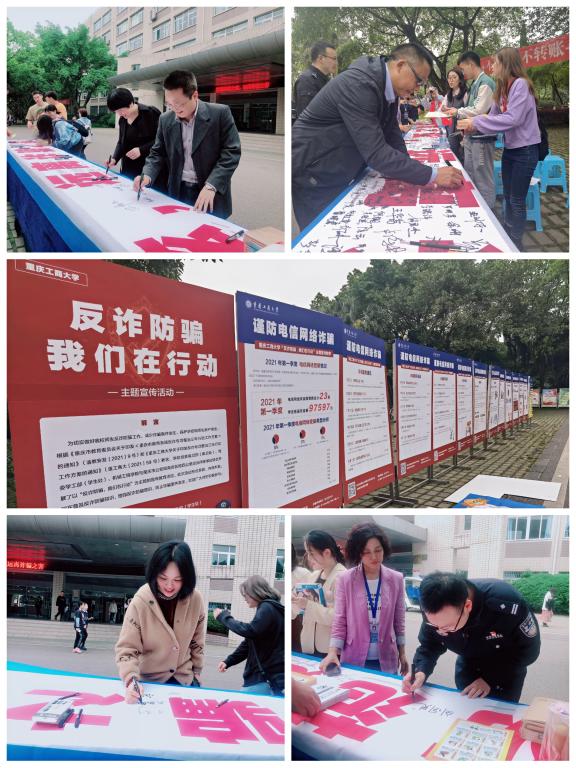 在专题讲座后,师生来到场外,在“紧绷防范之弦,远离诈骗之害”主题横幅上进行签名,表达自己“反诈骗”的信心和决心。“反诈防骗,我们在行动”主题宣传活动,在大学校园内营造了人人知晓、人人参与、人人宣传的浓厚氛围,掀起“全民反诈”热潮。
