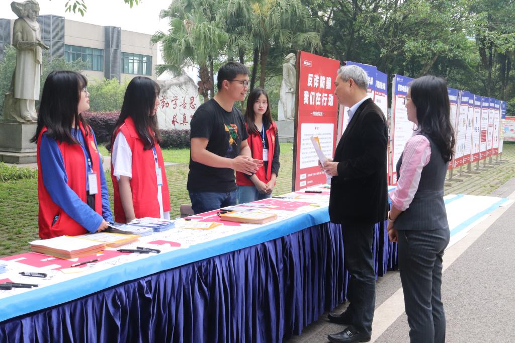 根据《重庆市教育委员会关于印发<重庆市教育系统反诈专项整治三年行动工作方案>的通知》(渝教安发[2021]9号)和《开云kaiyun官方网站关于印发反诈专项整治三年行动工作方案的通知》(重工商大[2021]59号),4月23日,开云kaiyun官方网站党委保卫部、学工部、开云kaiyun官方网站联合重庆市公安局南岸区局四公里派出所共同举办了“反诈防骗,我们在行动”主题宣传活动,校、警联动开展专项活动,旨在增强大学生反诈防诈意识,切实提高大学生自我防范意识,减少诈骗案件的发生。