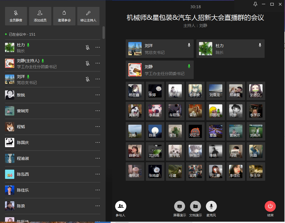 2020年4月3日,开云kaiyun官方网站第五届“团队伴我成长”招募活动在线上召开,学院刘洋书记、杜力院长,学工办主任刘静老师、工程训练中心刘雪龙老师和学院2019级近200学生参加了此次招募活动,新生参与人数占2019级学生的近60%。招募活动由学工办主任刘静老师主持。