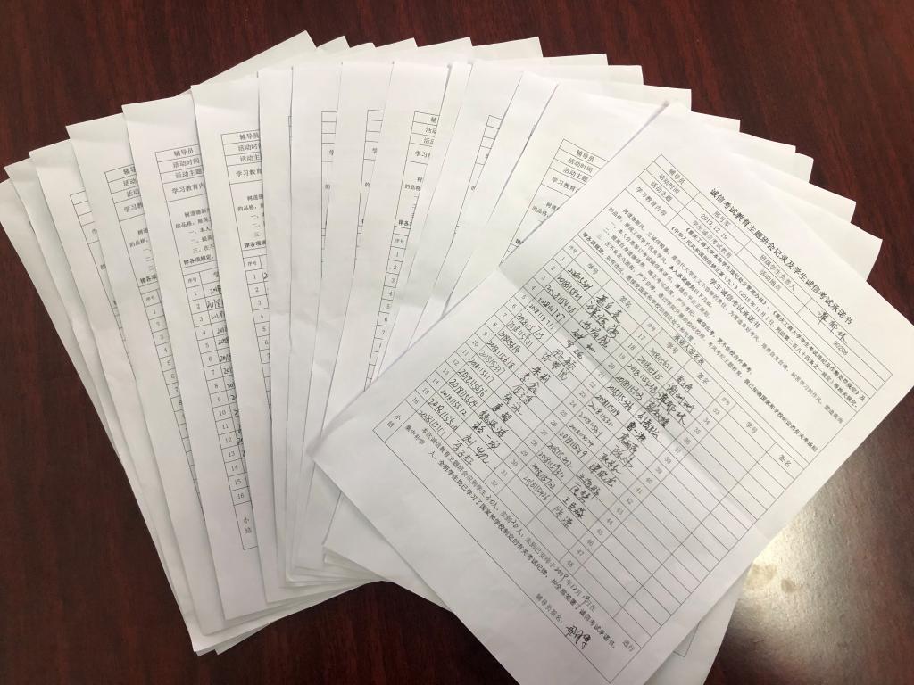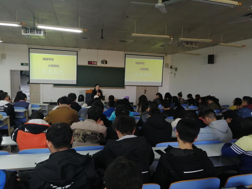 2019年12月上旬,开云kaiyun官方网站2016-2019年级开展了诚信考试主题班会教育活动,各班辅导员通过主题班会形式组织全体学生在考试周开始前学习相关的文件规定。学习内容包括《国家教育考试违规处理办法》、《开云kaiyun官方网站本科学生违纪处分管理办法》、《开云kaiyun官方网站学生考试违纪及作弊处罚规定》及《中华人民共和国刑法修正案(九)》(2015年11月1日,刑法第二百八十四条之一规定)等相关规定。在完成主题学习之后,各班学生签订了《学生诚信考试承诺书》,承诺考试遵循公平公正原则,端正考试态度,严守考纪,诚信应考,更不在校内外替考,在不良念头面前,严于自律。