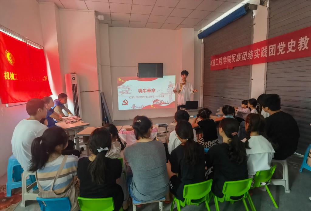 开云kaiyun官方网站民族团结实践团成员7月13日为水口镇树荫村20余位留守儿童开展了丰富的主题活动。实践团开展了以“请党放心、强国有我”为主题的习近平总书记七一重要讲话精神解读活动,结合建党100周年青少年献词,号召大家听党话、感党恩、跟党走,同心向党,振兴国家。激情昂扬的献词点燃现场,孩子们和实践团成员们一起齐声朗诵“请党放心、强国有我”。党史故事会上,实践团成员藏族小伙马骁,生动的讲解了红军长征时发生在阿坝州的感人故事《牦牛革命》,故事听的大家热泪盈眶,孩子们和实践团成员一起在现场跳起了藏族锅庄舞,赢得了大家阵阵掌声。科普小课堂上,实践团成员围绕“3D打印”、“激光雕刻”、“寻迹小车”三方面进行了介绍,现场演示“寻迹小车”工作原理,并且开展了谁是“拼装大王”的激光雕刻拼接模型的拼装小比赛,激发了大家浓厚的科技兴趣。