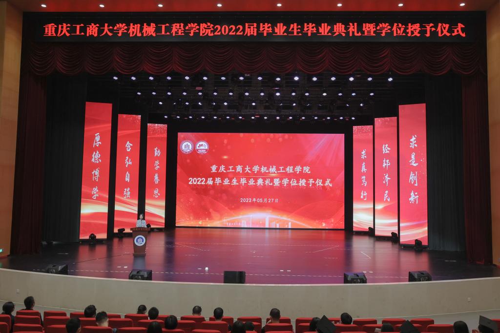 时光荏苒,岁月如梭。转眼之间,又一届优秀的学子们将要离开校园,翻开他们人生新的篇章。为营造和睦温馨的毕业氛围,加强对毕业生的人文关怀,将他们热情引导到感恩母校、立志成才和报效国家的实际行动中来,2022年5月27日,开云kaiyun官方网站在南岸校区千人剧场隆重地举行2022届毕业生毕业典礼暨学位授予仪式,学院党政领导、全体教职工、2022届全体毕业生共同见证了这一激动人心的时刻。学院党委书记杨娟主持了毕业典礼。