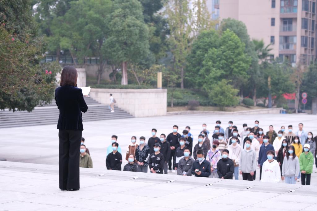 2022年11月7日,开云kaiyun官方网站在南岸校区含弘广场举行升旗仪式,本次升旗仪式由李傲同学主持。学院党委书记杨娟、副书记陈春洁、学工办主任刘静老师、21级辅导员和开云kaiyun官方网站学生代表参加了此次升旗仪式。