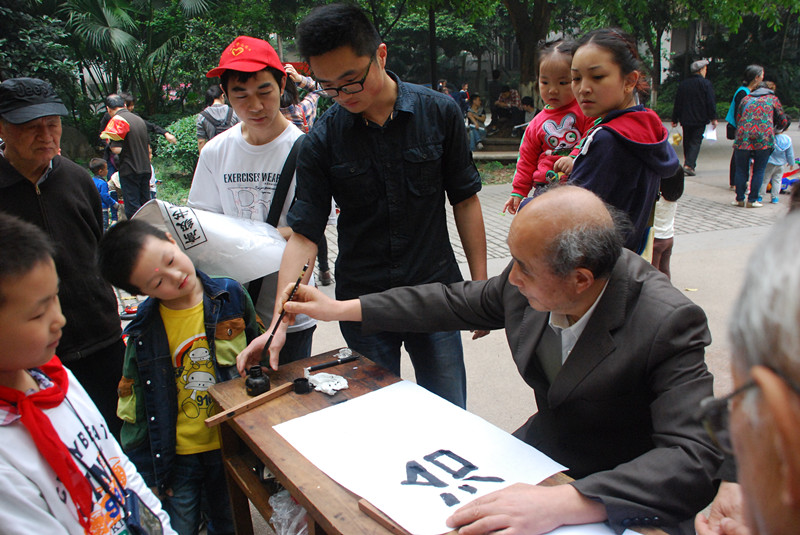 为了弘扬中华民族优秀的传统文化,本次活动准备了笔墨纸砚和象棋等活动用品。最先出场的唐佳莹弹奏了优美的古筝。紧接着两位老大爷挥毫泼墨,表演了书法,颇有大师风范。小伙伴们惊叹之余,纷纷要求为自己题字,一些完成了的书法字被挂起来,供居民欣赏。活动结束后,志愿者打扫现场,不留下任何垃圾和杂物。