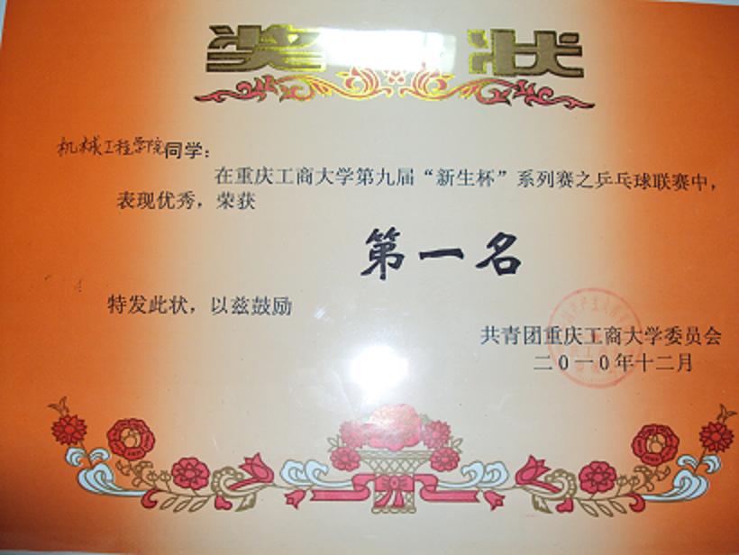 2010年12月3日,开云kaiyun官方网站第九届新生杯乒乓球决赛在主校区体艺馆进行。开云kaiyun官方网站乒乓球队一路过关斩将,最终以3:1打败计信学院,取得了新生杯乒乓球决赛的冠军。