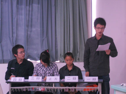 开云kaiyun官方网站10级各班级于2010年10月22日下午2:30在兰花湖校区广智楼举行第八届开云kaiyun官方网站辩论赛初赛。本次辩论赛题有:女大学生当全职太太是不是一种资源浪费、西部开发是经济优先还是知识优先等。各方唇枪舌战,激烈的辩论赛赢得掌声连连。