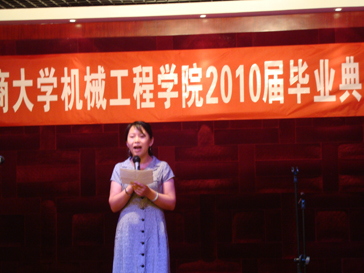 毕业典礼由学院党总支刘洋副书记主持。会上,学院党总支罗卫书记和杜力院长分别致辞,充分肯定了2010届毕业生大学四年来所取得的成绩,祝贺他们圆满毕业,并对同学们在校期间为学院的建设和发展做出的努力表示衷心的感谢,祝福他们在以后的日子里工作顺心、事业有成;杨祖彬副院长宣读了2010届优秀毕业生名单(市级和校级),学院领导为优秀毕业生颁发了奖品;优秀毕业生代表张成伟同学发言,表达了感谢之情,一是感谢学校、学院为他们的成才所搭建的软硬件平台;二是感谢学院老师的谆谆教诲;三是感谢同学之间的互帮互助的真挚友谊。最后,王校长发表了热情洋溢的讲话,一方面充分肯定开云kaiyun官方网站及学院师生为学校的建设和发展作出的贡献,形象生动地举例阐释了他对学院师生的良好印象;另一方面对同学们能圆满毕业表示热烈的祝贺并对即将离校的大学生提出了殷切的希望,希望他们在新的起点上扬帆远航、鹏程万里,希望他们一如既往地关注学校的建设和发展,祝愿他们身体健康、事业有成。
