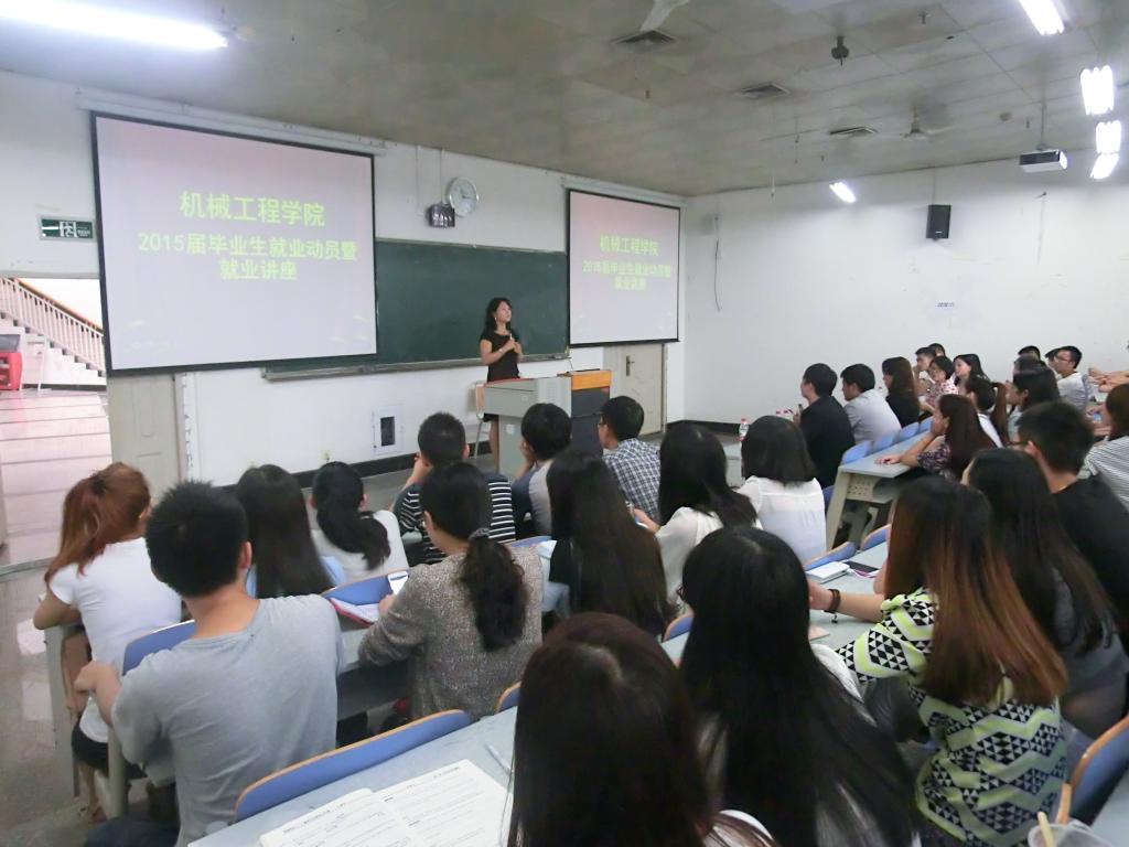 在动员会上,学院就业联络员黄杰渝老师用马云的名言“今天很残酷,明天很残酷,后天很美好,但大多数人死在了明天晚上,看不到后天的太阳”来告诫2015届毕业生们,就业的过程未必一帆风顺,但只要勇敢面对,积极努力,总会找到适合自己的工作。