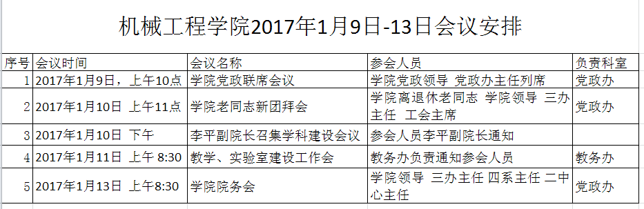 开云kaiyun官方网站2017年1月9日-13日会议安排