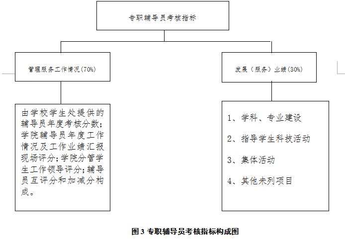 3、根据学校相关考核办法及学院的实际情况,该考核分配方案按专任教师、行政、教辅和辅导员4个考核组分别进行考核,切块分配。专任教师考核以定量考核为主,行政等其他人员以定性考核为主。考核时间从每年的12月1日始,至第二年的11月30日止。