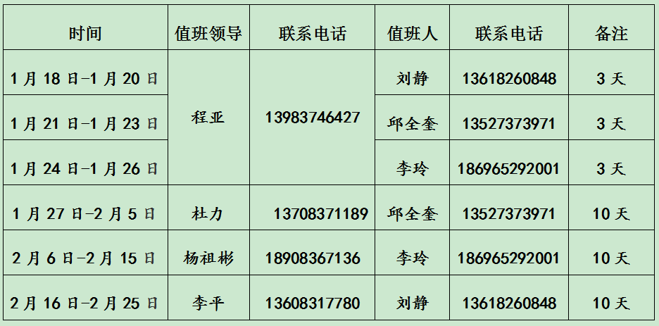 开云kaiyun官方网站2020-2021学年第一学期寒假值班安排