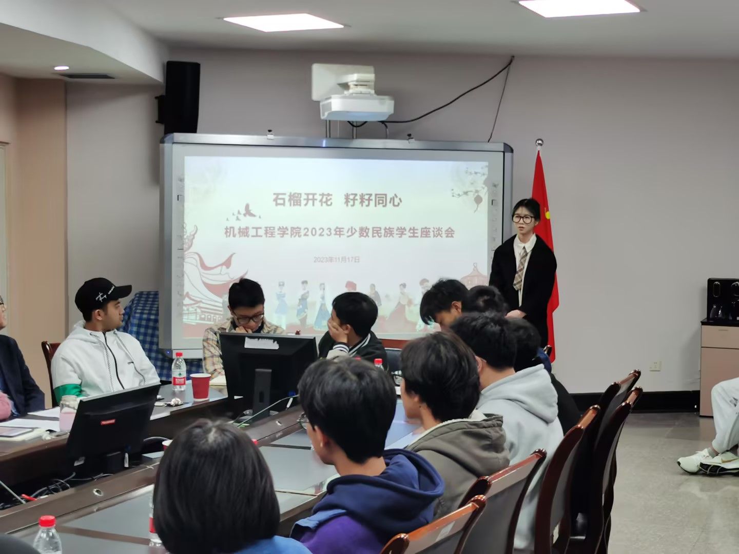在互动交流环节,来自苗族、土家族、维吾尔族、回族、彝族、藏族、侗族、壮族、蒙古族、仡佬族、满族等少数民族的同学纷纷发言,分享了自己的家乡特色、民族历史和民族文化,详细回顾总结了自己入学以来取得的方方面的成绩,反馈了目前所面临的困难,畅谈来校后的学习生活感受以及将来回家乡为家乡积极做贡献的打算,对学校和学院的关怀表达了感恩之情,对老师和同学的帮助表示由衷地感谢。杜力院长、李平副院长依次为同学们解答学业和生活上的困惑,并对机械类专业新生代表提出了专业分流选择的建议,对高年级学生代表考研方向选择给予专业的意见。