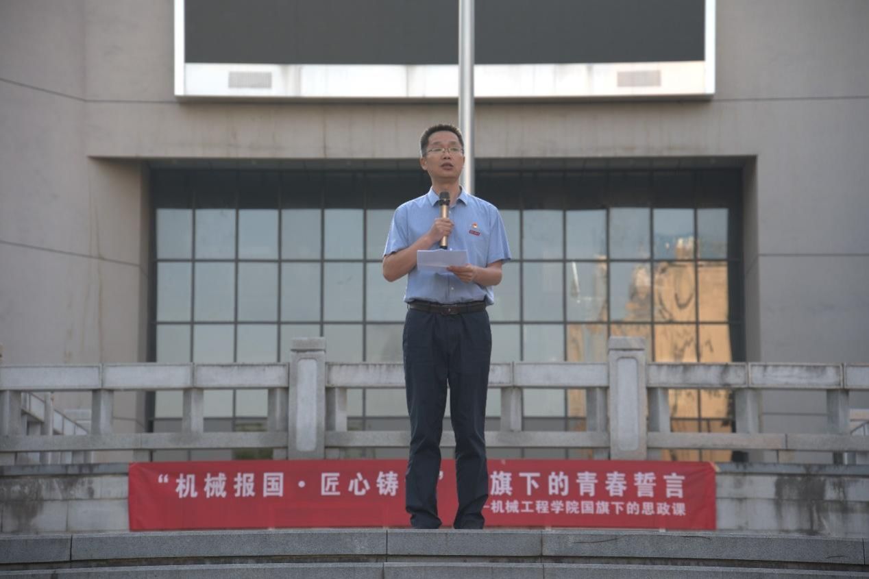 活动在庄严的升旗仪式中拉开序幕。国旗护卫队入场,全体师生肃立注目,伴随着雄壮的国歌声,五星红旗冉冉升起。学生代表胡富杰发表国旗下演讲。他从青年学子视角阐述了对“机械报国,匠心铸魂”的理解,表达了新时代大学生服务国家发展的决心和热情。