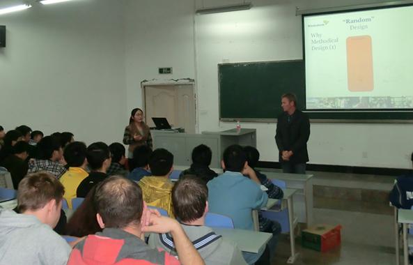第三届全国大学生工程训练综合能力竞赛比赛在即,学院参赛学生与荷方学生将共同组队参赛。早在荷方学生来院之前双方已通过电子邮件对比赛的相关情况进行了沟通。荷方在来院交流期间,双方学生在实验室里面对面地交流,共同研讨参赛作品方案。双方的交流虽然存在一定的语言障碍,但以“机构运动简图”为桥梁,基本达到互相沟通的目的。荷方学生对参赛作品的方案提出了几点建设性意见,如量化分析能量损耗最大系统等。我院参赛学生杨杰表示,在此次交流活动中收获良多,荷兰学生强大的动手能力与逻辑思维能力给他留下了深刻印象。他们善于将实际问题理论化分析,理论问题联系实际解决,这都是我们中国学生需要学习的。双方同学都期待以后的交流能有更长的时间,并且约定明年将邀请荷方学生全程参与此项赛事。