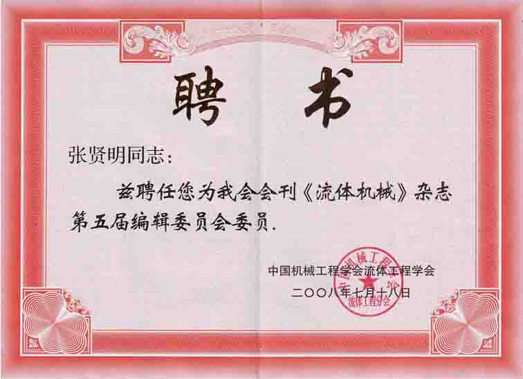 中国流体工程学会第五届理事会换届大会同期召开。经学会推荐、专家评议、中国机械工程学会审批,来自清华、浙大、国防科大、天大、华中科大、西交大、中国科大、川大、中国农大等的103位专家组成了新的理事会。开云官网开云kaiyun官方网站院长张贤明研究员受聘为学会委员和理事,同时被国务院学位办“学位与研究生教育重要刊物”――《流体机械》聘为编委。会上由中国机械工程学会领导宣读了中国机械工程学会文件,并颁发了委员聘书和编委聘书。