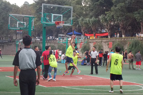 篮球赛一开始,各球队都迅速进入状态,各队员斗志昂扬。在比赛过程中,裁判员秉公执法,严肃认真,尽自己最大的努力判决好每一个球,保障了比赛的公证性、连续性和观赏性。学生们不断进取,每分必争,老师们更是奋勇拼搏,他们主动出击,动作敏捷矫健,齐心协力,各队实力相当,多次打平,让球场气氛高涨,两队都不甘示弱,互不相让。最终两队以30:17的比分结束,机械队夺胜。