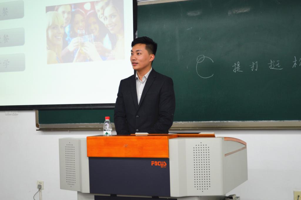 朱耀廷毕业于中国传媒大学播音系,是重庆师范大学的特聘教师,新华网政府高层访谈特约主持人,国家一级播音员,2011年的时候曾是央视一套和十三套的新闻配音解说。此次朱老师举办这次活动的目的就是为了让当代大学生感受语言的魅力。朱老师先以一段大家耳熟能详的“八百标兵奔北坡,炮兵并排北边跑。炮兵怕把标兵碰,标兵怕碰炮兵炮”绕口令为开头,调动了现场的气氛。这一段十分流利且饶有趣味的的绕口令,充分的展示了朱老师深厚的语言功底。随后朱老师指点了学生朗诵高尔基的《海燕》,引导学生用3个不相关的词造句,向大家展示了语言的魅力。