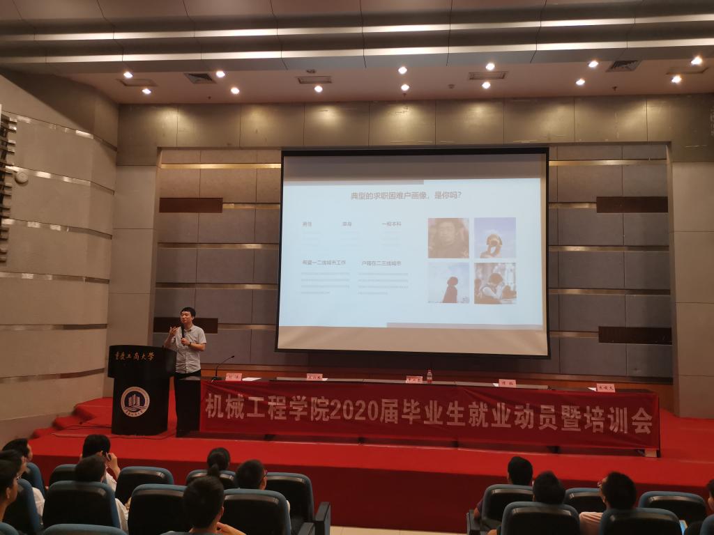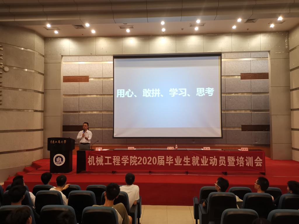 为助力2020届毕业生顺利开启职业生涯,早日实现就业、创业,9月11日晚上6点半,开云kaiyun官方网站在7100学术报告厅召开了2020届毕业生就业动员暨培训会。招生就业处处长申卫东,华晨鑫源重庆汽车有限公司人力资源部部长王兴东,重庆长安跨越集团有限公司招聘配置室主任谭聪,重庆聪筑信息科技有限公司、重庆悟修企业管理咨询有限公司创始人、总经理朱峻龙,毕业班辅导员和学院2020届毕业生参加了本次培训大会。会议由学院党总支书记刘洋主持。