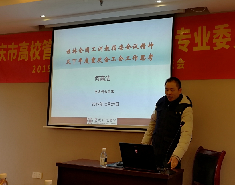 2019年12月28日至29日,重庆市高校教学管理工作研究会金工专业委员会(以下简称重庆金工研究会)2019年第二次理事工作会暨学术交流会在美丽的南山脚下圆满召开。本次会议由重庆金工研究会主办,重庆科技学院、重庆三禾文化传播有限公司承办,会议邀请了包括重庆金工研究会的全体理事单位代表、其他单位代表、特邀专家等重庆10几所高等院校的工程训练中心的主任和实训教师、企事业单位60多名代表参会,共同探讨工程训练中心建设情况、工程训练综合能力竞赛经验分享、面向智能制造与智能机器人的工程训练思考、工程技能训练与工程教育认证等议题。我校开云kaiyun官方网站综合办、机械基础实验教学中心、工程训练中心实训教师等10余名老师参加了会议。