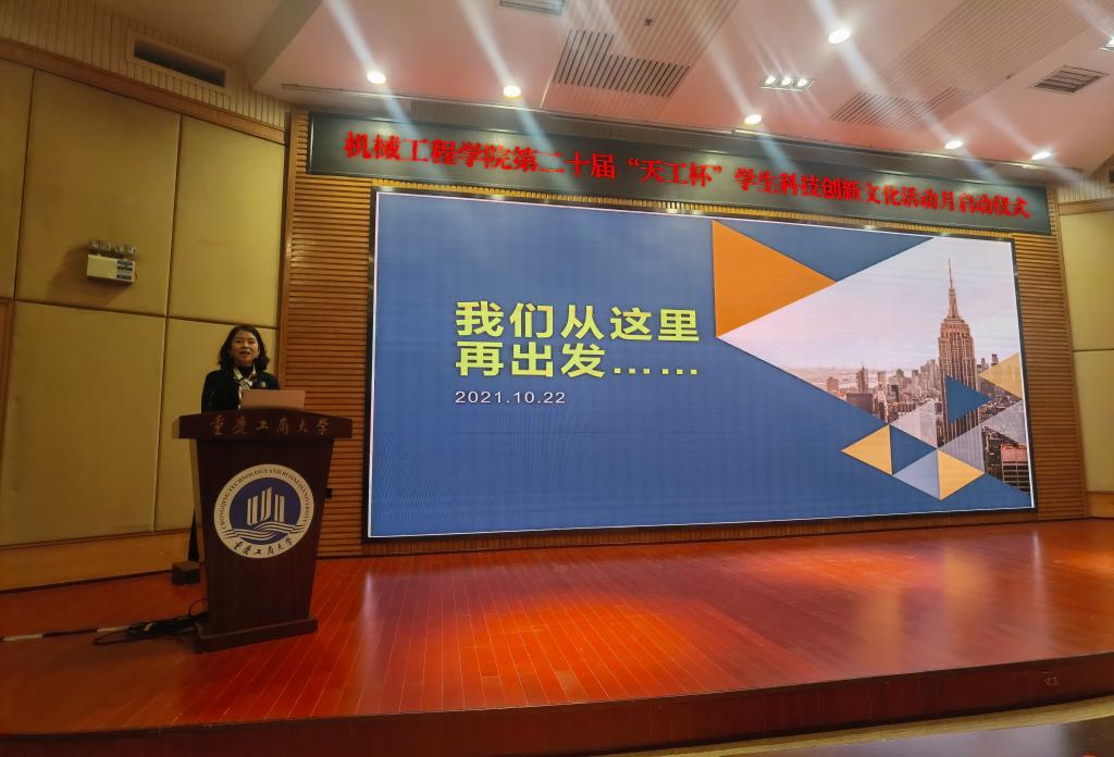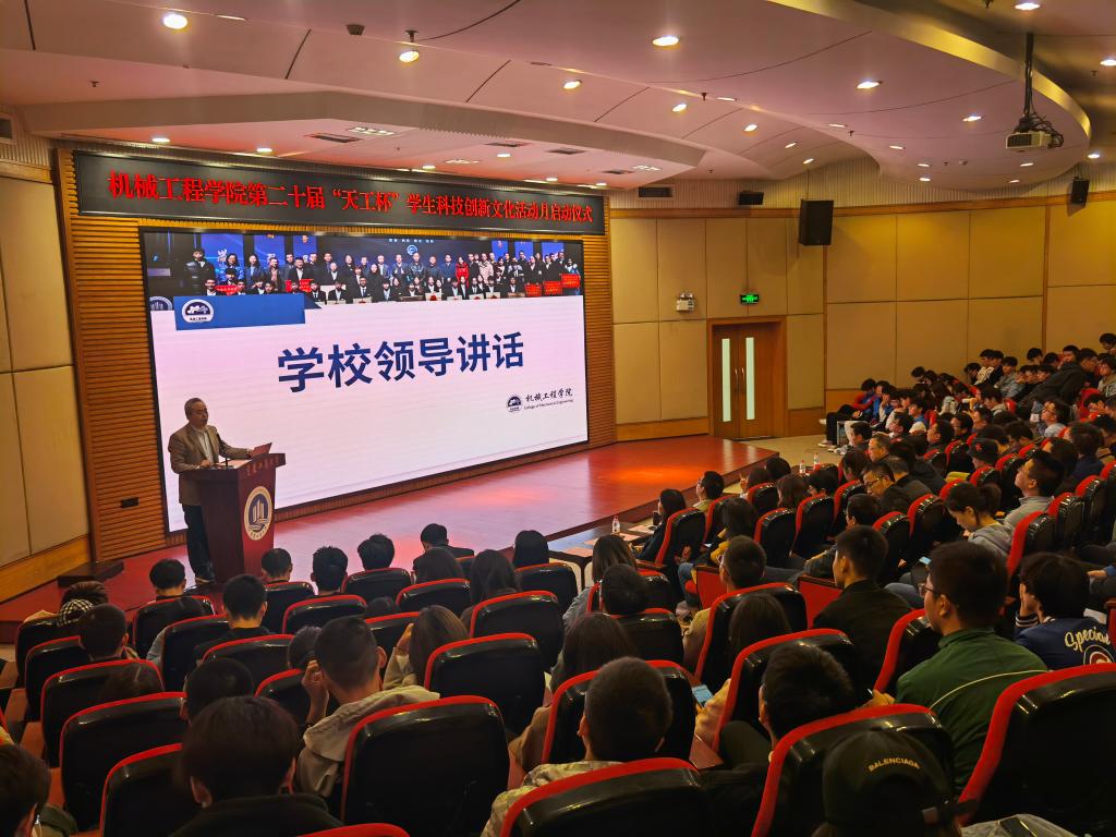 启动仪式上,杜力院长以“我们从这里再出发”为题做主题发言,她感谢学校领导和职能部门对学院的鼎力支持,感谢机械校友们数年如一日对“科技创新文化活动月”的无私赞助,感谢同学们的热情参与,并充分肯定了以往学科竞赛取得的成绩。同时,她对今年科创月前期调研情况进行了分析,对同学们也提出了新的任务和要求,希望大家致力于提升自己的“2+1工程素养”,在科技活动中磨练自己,充分发挥出自己的潜能!