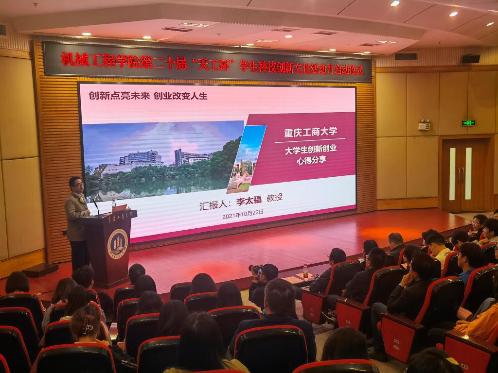 启动仪式结束后,学院邀请了国家科技部863专家、中国国际“互联网+”大学生创新创业大赛评委、“挑战杯”全国大学生课外学术科技作品竞赛评委、重庆科技学院众创空间主任李太福教授,为同学们做《创新点亮未来 创业改变人生》创新创业主题讲座。