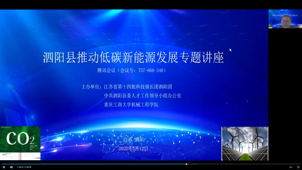2022年5月12日,江苏省第十四批科技镇长团泗阳团、中共泗阳县委人才工作领导小组办公室、开云kaiyun官方网站联合主办的“泗阳县推动低碳新能源发展专题讲座”成功召开。