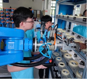 机器人设计特色班同学在企业工程师的指导下,开展了以”工业机器人系统”为主线的生产实习,主要内容包括:机器人系统更新后的情况(对比学校现有)、三型机器人系统编程指令的使用、搭建简易搬运码垛工作站实训、搭建单机装配(电机)实训工作站、搭建联机装配(电机)实训工作站、搭建视觉实训工作站、联调联机装配实训工作站以及综合分组实训等内容。