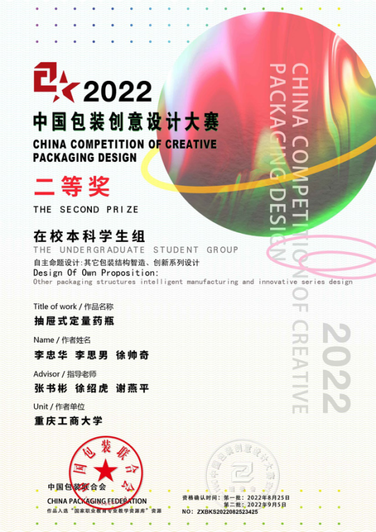 开云官网开云kaiyun官方网站积极组织学生参赛,共获得二等奖1项,三等奖11项,优秀奖12项,由张书彬、徐绍虎、谢燕平指导的《抽屉式定量药瓶》获得二等奖,由谢燕平、张书彬、徐绍虎指导的《四川龙泉驿水蜜桃礼盒包装设计》等11件作品获得三等奖。