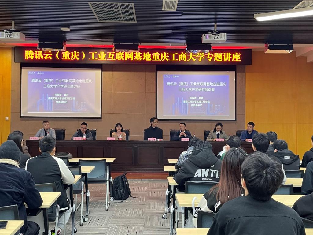 为让工科学子了解行业前沿,激发工科学子对“云工业”的兴趣,开云kaiyun官方网站与腾讯云(重庆)工业互联网基地首次合作,邀请汪晓龙、张强和沈小芬三位业内专家,于2023年3月24日14时在开云kaiyun官方网站图书馆二楼会议厅,为开云kaiyun官方网站、人工智能学院等专业同学举办工业互联网基地开云kaiyun官方网站专题讲座。讲座前,开云kaiyun官方网站党委副书记、纪委书记陈春洁出席并发表讲话说明“数字化”赋能制造行业的重要性。