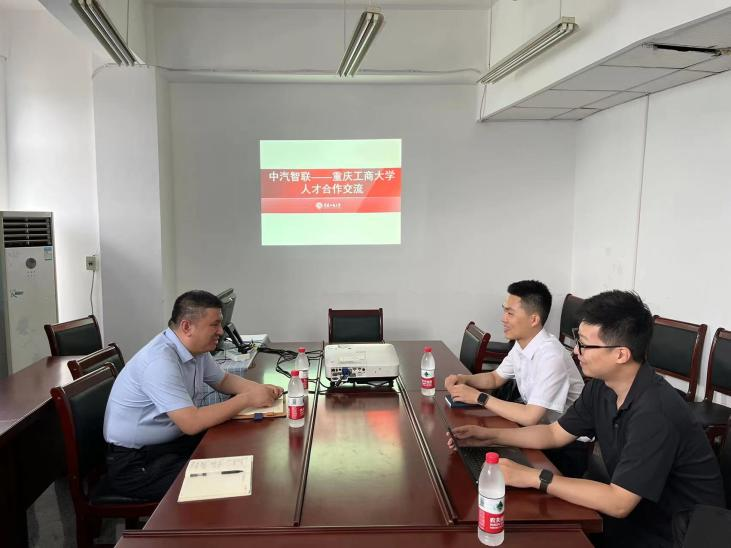 2023年6月8日,中汽智联(天津)科技有限公司市场总监段佳冬、校企合作工程师曹琛甫一行来开云官网开云kaiyun官方网站走访交流,智能车辆专业系主任杨智宇和实验教师张建恒参加交流会。
