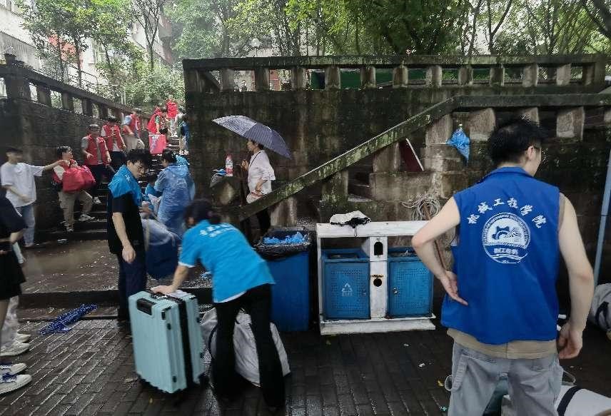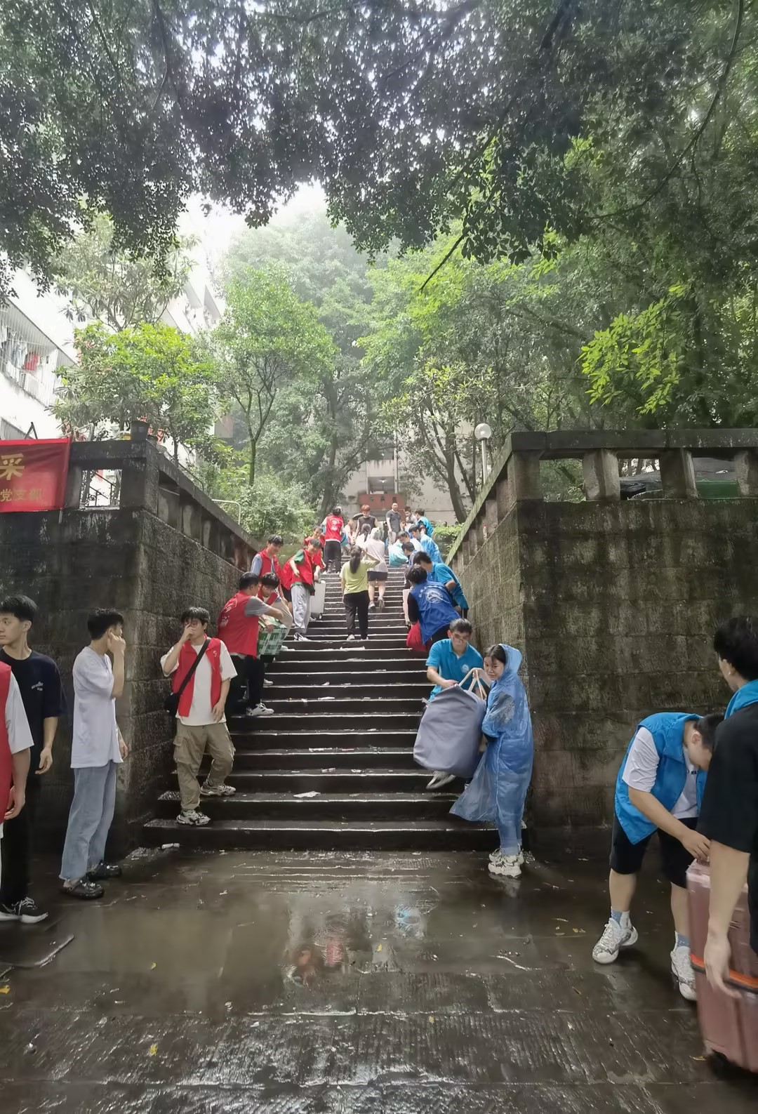 从清晨6:00开始,兰花湖学生们相互搭手、互相帮助,收拾行李。男生们自觉担当,帮助女生们搬运行李装车,他们遵循“行李先装车,同学后上车”的原则,有条不紊地默契配合着,高效地完成了装车任务。主校区,志愿者们早早地集合,简单食用了早餐,便匆匆赶往预定地点投入到忙碌的工作中。志愿者们分工协作,有的迅速组成人墙传送行李、有的帮忙翻找行李、有的引导学生找宿舍...搬运工作结束后,几乎每一位志愿者都被汗水和雨水浸湿,但他们没有一丝抱怨,始终洋溢着微笑,展现了我们开云kaiyun官方网站学子勇于担当的精神面貌。