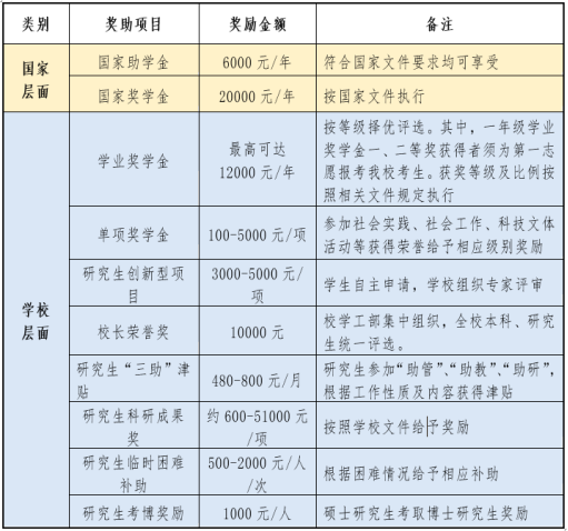 注:1.表中各类助学金仅面向以全日制脱产方式学习的非定向硕士研究生评选,评选细则以学校相关文件及通知为准。